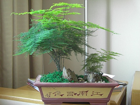 Also bought myself a plant today to bring some life into my room – for the grand price of £3! It’s a beautifully planted asparagus fern (Asparagus plumosus), which is grown for its graceful feathery foliage and therefore often used in flower arrangements. Contrary to its name, this is not a Fern at all however, it’s actually part of the Asparagaceae family (i.e. the asparagus family). It is native to South Africa and is so invasive in open ground that it’s classified as an ‘aggressive, noxious weed’ in Australia. I actually think it looks like a cheats bonsai because of the way in which it is arranged in the pot (minimum effort in terms of cultivation yet maximum result in terms of charisma). It creates a really nice, tranquil scene and I have to say: the Chinese have a great way with plants and flower arrangements. In fact it reminds me of the many bamboo trees we passed on the way to Yiwu last weekend.